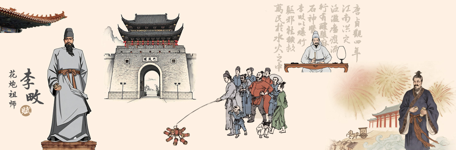 By the banks of the Lushui River lies the ancient town of Liling. For over a thousand years, its fireworks have illuminated the world. Tracing the origin, we find Li Tian of the Tang Dynasty, who with masterful craftsmanship set the sky ablaze and broke the long night, thus being revered as the founding father of fireworks. Once I visited the Li Tian Temple in Fuli, where incense smoke curled around ancient steles. I imagined him in those days pounding herbs and mixing saltpeter — it felt as if the Milky Way had fallen to earth, with trees of fire and silver flowers. Now I compose this ode to praise his virtue and commemorate his achievements.