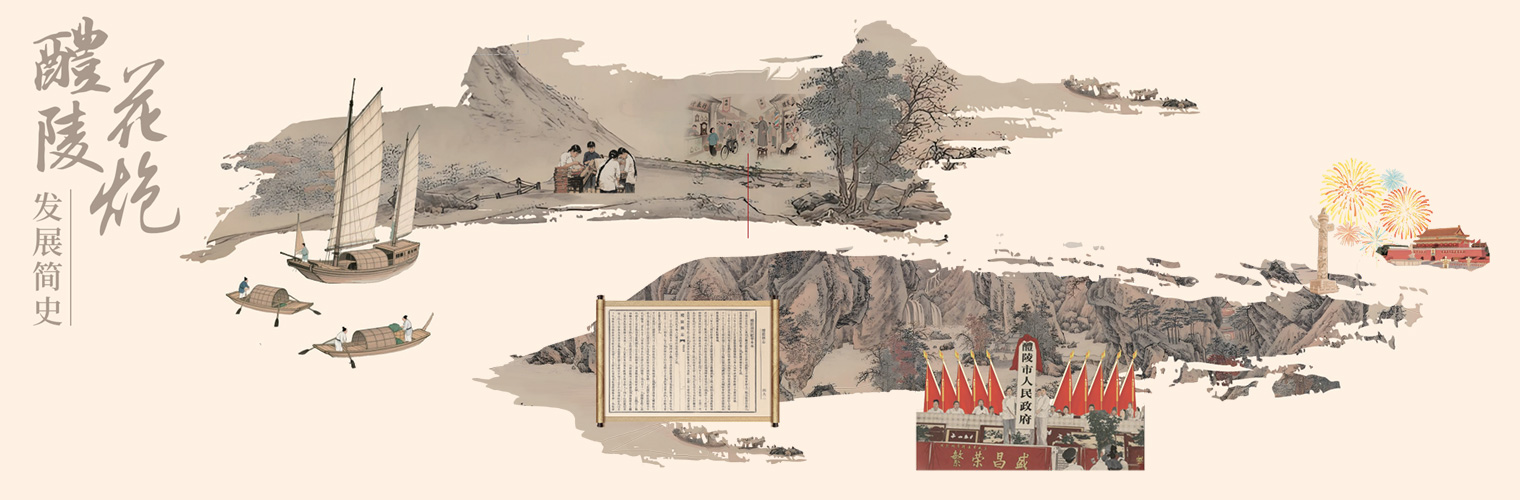 In 1932, He Jiming, a native of Liuyang, came to Liling and opened the “He Fasheng” workshop on Ximen (West Gate), becoming the first to produce fireworks. He created more than 20 varieties of fireworks. (From then on, firecrackers and fireworks were collectively referred to as huapao — fireworks and firecrackers.) During the War of Resistance Against Japan (1937–1945), production of fireworks and firecrackers largely ceased, and exports were interrupted. After the war, the industry gradually recovered.